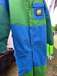 Cave suits are made of Cordura fabric which are coated in both polyurethane (back side) and a durable water-repellent finish (front side) to create a rugged material that is strong, versatile and reliable. It's also easy to clean. It has one pocket with flap to store maps, phone, or whatever you want! It has elastic in the waist to give it some shape and it is very comfortable for all the crawling and stretching we have to do in caves.