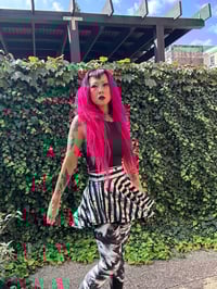Super cute flare skirt with iridescent creepy stripes! Wear it over your leggings, shorts, by itself to the gym, to a show, or where ever you want! You can also add pockets!